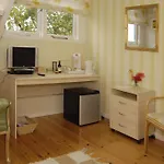 The rooms comprise a dressing room and a dining area complete with ironing equipment, as well as a flat-screen TV with satellite channels. They have kitchen facilities, such as an electric kettle and a fridge.